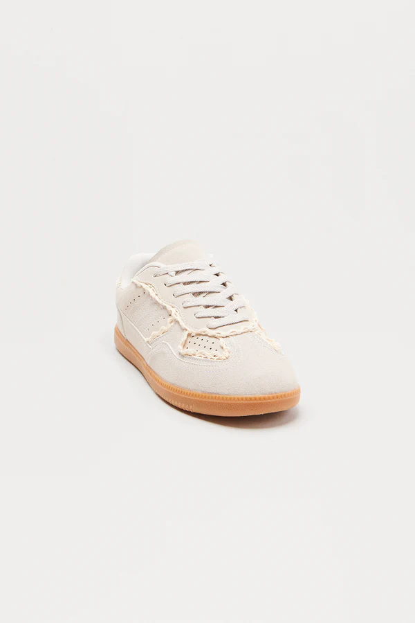 Step out in effortless elegance with the Trim Faux Suede Sneakers in Cream. Their soft texture and neutral tone make them the perfect blend of comfort and class — ideal for casual days that still call for a touch of style.